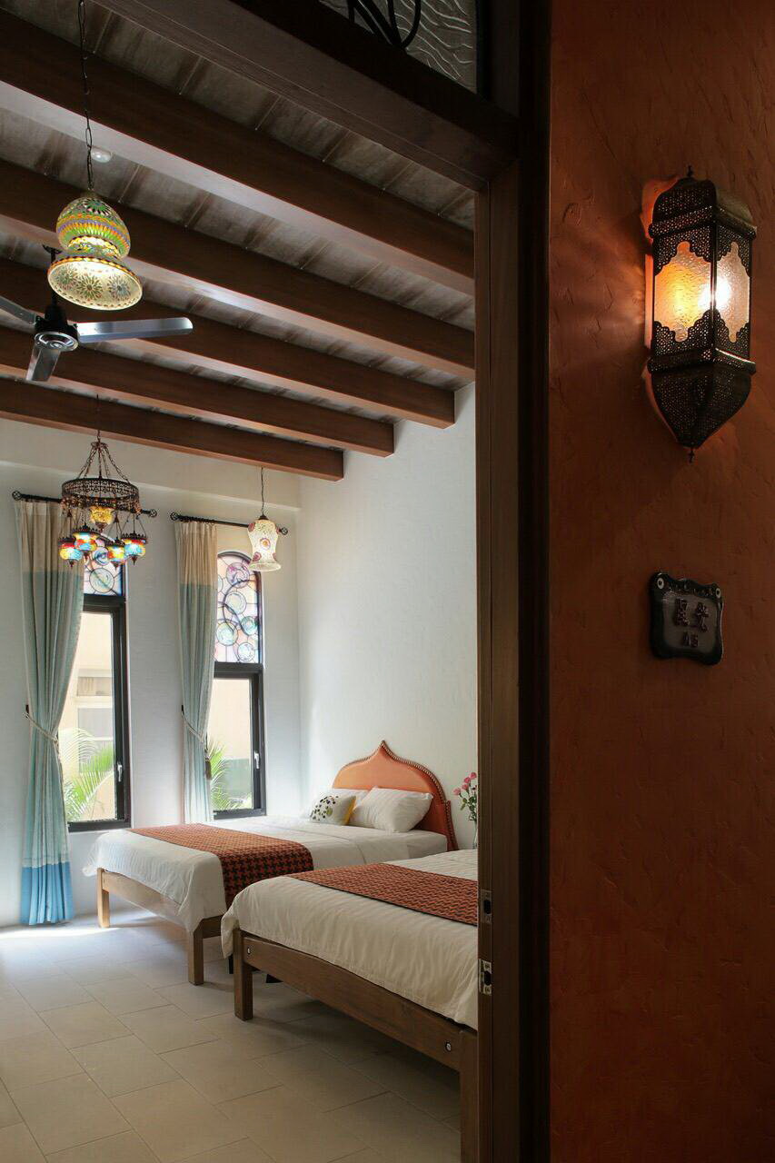直條窗上的彩繪玻璃讓房間更加繽紛